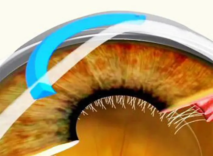 Bei entsprechender Eignung kann zusätzlich eine Sehkorrektur mit implantierbaren Linsen ICL oder intracornealen Ringsegmenten (ICRS) erfolgen. Diese Ringsegmente werden in die Hornhaut eingesetzt. Sie beeinflussen sowohl die Form als auch die Stabilität der Hornhaut positiv und es kann eine bessere Sehschärfe erreicht werden.