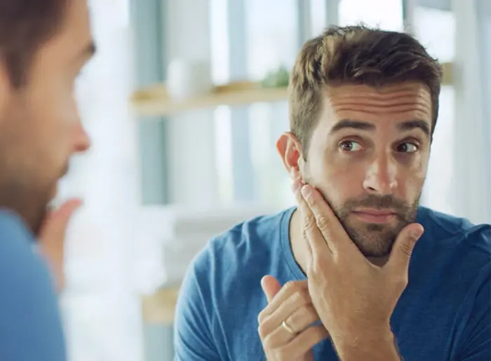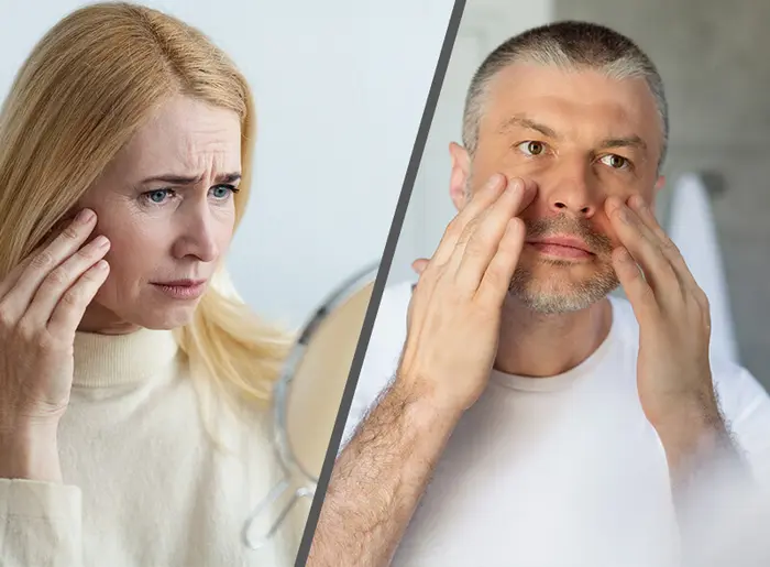Müder oder trauriger Blick, obwohl Sie sich fit fühlen